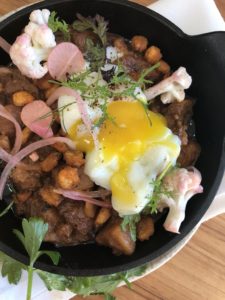 The pork y huevos was my favourite dish. It comes with red chile cashew braised pork, poached egg, crispy hominy, pickled veggies and warm tortillas. It is hearty, warming, and really ding dang good. The chile sauce it’s cooked in is addictive. And of course, the warm tortillas it’s paired with doesn’t hurt.
