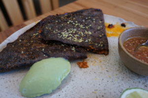 I wasn’t a huge fan of the grilled doblada’s texture, but the flavors were on point. It comes with chorizo and potato stuffed red corn masa, shaved cured egg yolk and a pumpkin sesame seed habanero salsa.