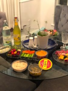 late night snack- hummus, veggies, rice crackers, turkey, olives and fruit my mom made for Joel and I (yeah, she’s a gem)