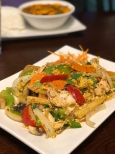 dinner- sweet potato glass noodle with chicken and veggies from Chilantro